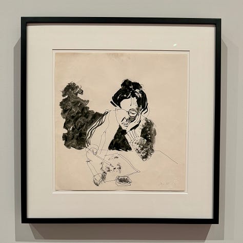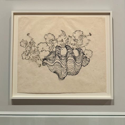 These days, when I have the chance to get to New York and have a few hours to spare, hitting a museum is always at the top of my list. Luckily, that aligns well with my artsy kid’s interests too, so I looked for an exhibit we might both enjoy, and a show that was about to close at the Whitney caught my eye. Ruth Asawa Through Line featured just one of the wire sculptures for which she is best known, instead focusing primarily on her drawings, sketches, and other paper works spanning some six decades or so. According to the exhibition description, Asawa drew daily, and the show included a wide range of pieces — ink portraits, watercolor studies, sketches for the wire forms, explorations of shape and line from her time at Black Mountain College, and striking, origami-inspired folded paper forms that shift and transform depending on your viewing angle.